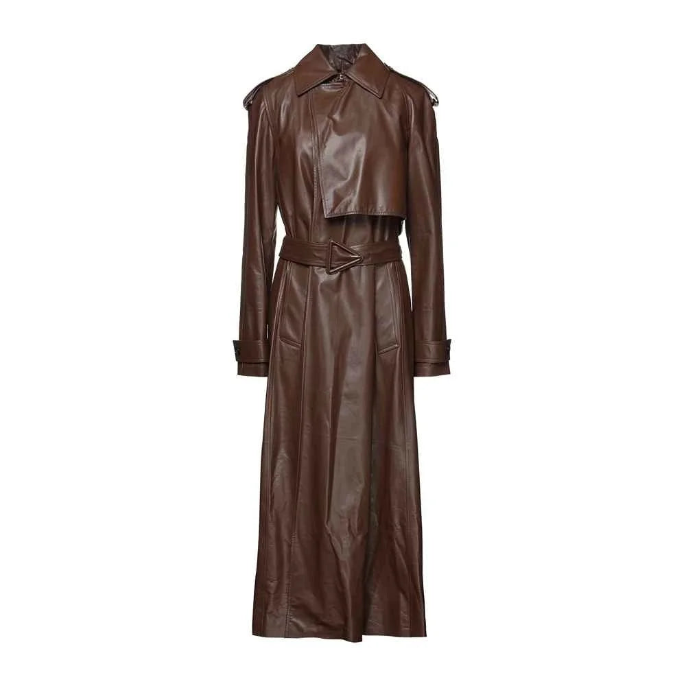 Command Attention in Style: The Womens Long Leather Trench Coat Indulge in timeless luxury and...