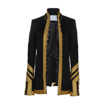 Men’s Black Wool Military Jacket – Gold Button Blazer