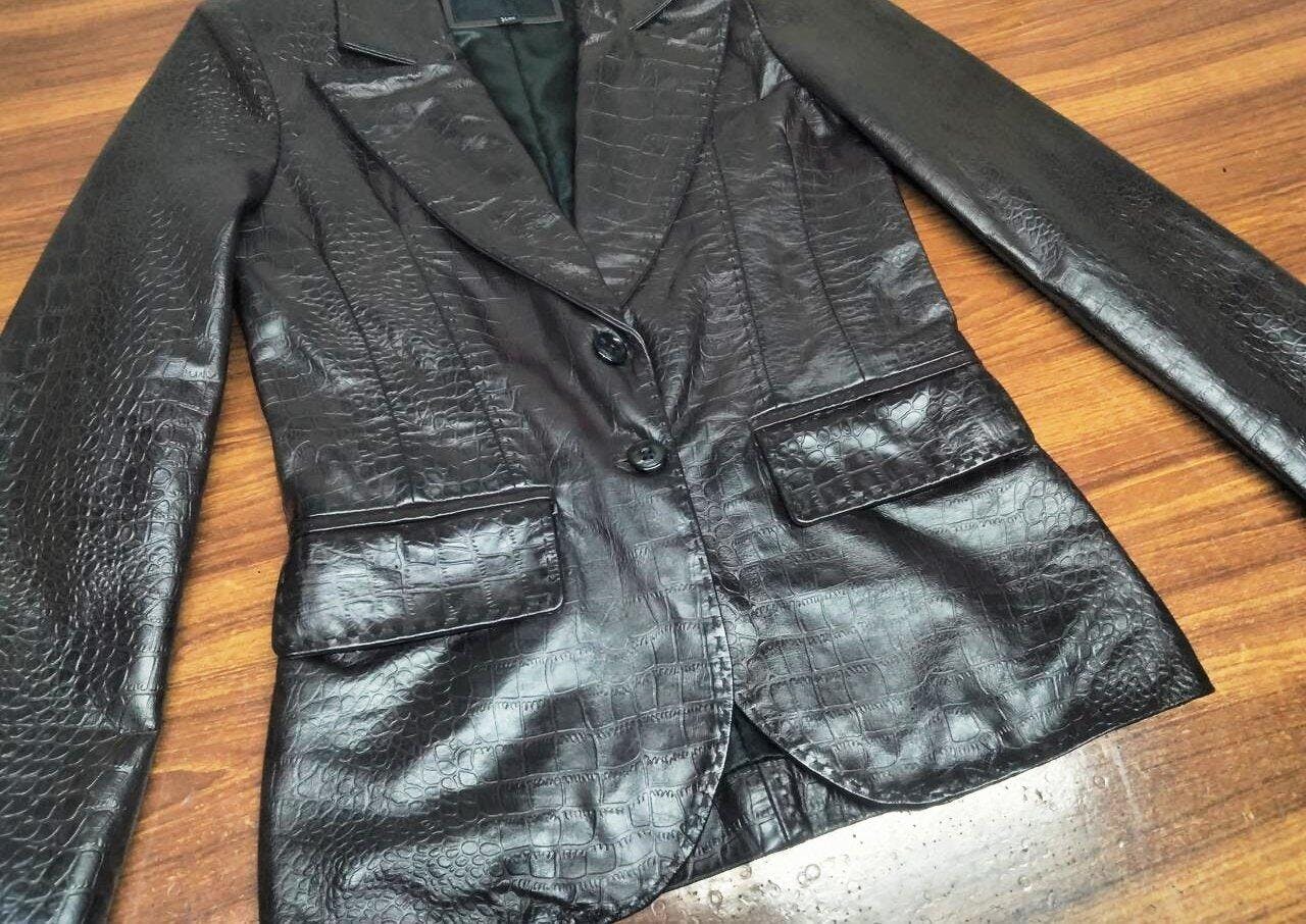 Men’s Black Crocodile Embossed Leather Blazer – Trendy Fit